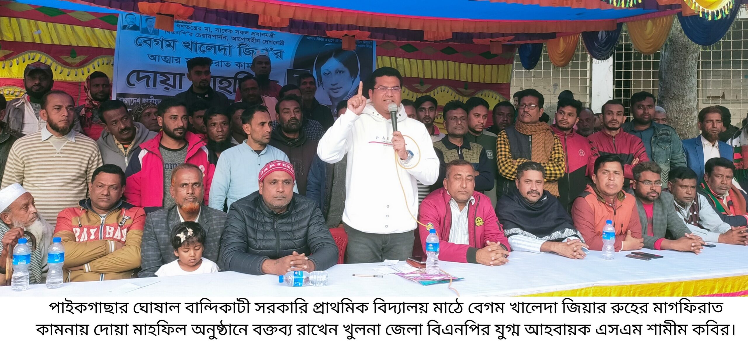 জেলা ছাত্র ও যুব দলের সাবেক সভাপতি শামীম কবির জামায়াত প্রসঙ্গে সাবেক প্রধানমন্ত্রী বেগম খালেদা জিয়ার রুহের মাগফিরাত কামনায় আয়োজিত দোয়া মাহফিল অনুষ্ঠানে এ ধরনের মন্তব্য করেন। ১৫ জানুয়ারি বৃহস্পতিবার বিকেলে ঘোষাল বান্দিকাটী সরকারি প্রাথমিক বিদ্যালয় মাঠে পাইকগাছা উপজেলার গদাইপুর ইউনিয়নের ১,২ ও ৩ নং ওয়ার্ড বিএনপি এবং অঙ্গ সহযোগী সংগঠন এ দোয়া মাহফিল অনুষ্ঠানের আয়োজন করে। শামীম কবির বলেন ধানের শীষ ব্যক্তিগত কারোর প্রতীক নয়, জিয়া পরিবার সহ বিএনপির দলীয় প্রতীক।