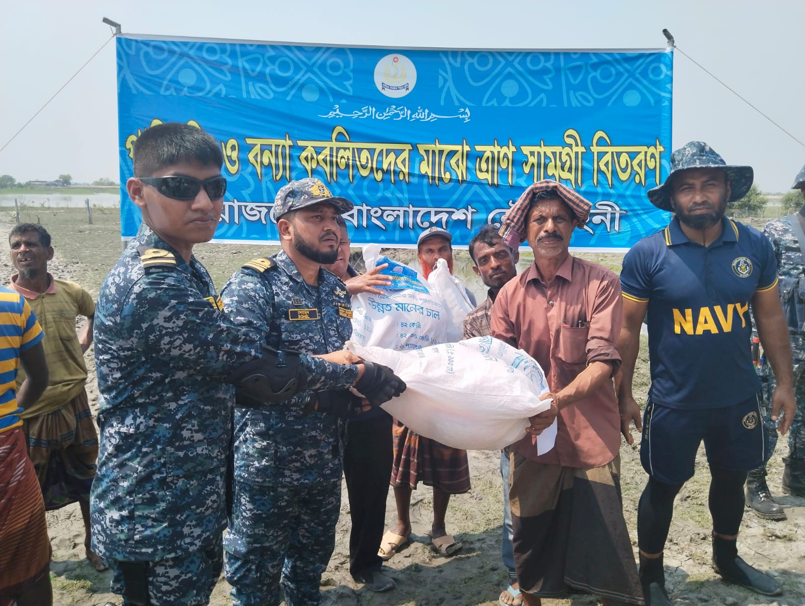 সাতক্ষীরার বেড়িবাঁধ ভাঙ্গন এলাকায় নৌবাহিনীর জরুরি ত্রাণ ও মেডিকেল সহায়তা