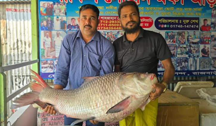 মঙ্গলবার (২৫ মার্চ) ভোরে দৌলতদিয়ার ৭ নম্বর ফেরিঘাটের অদূরে পদ্মা ও যমুনা নদীর মোহনায় জেলে শওকত হালদারের জালে মাছটি ধরা পড়ে।