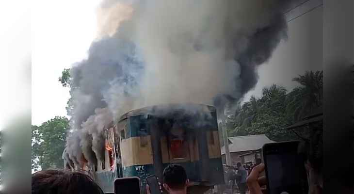 গাজীপুরে ট্রেনের বগিতে আগুন