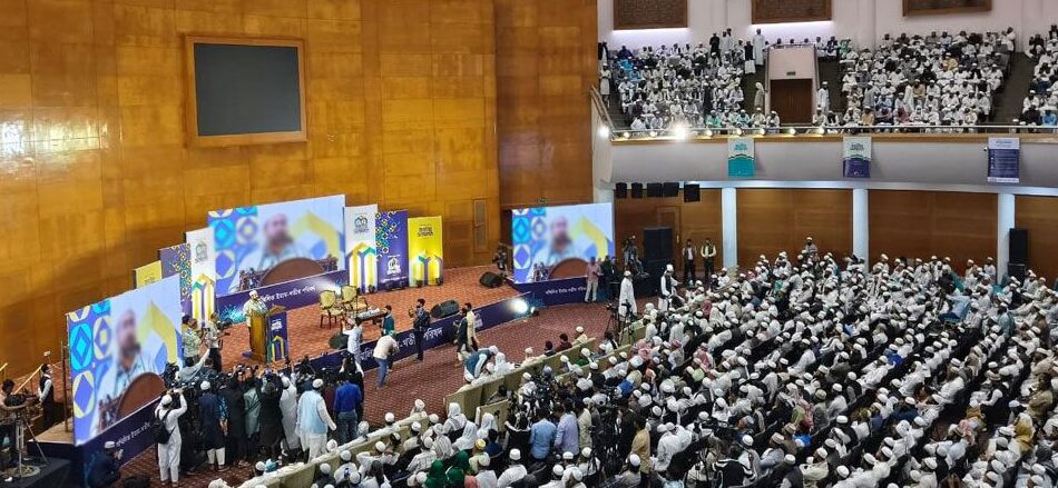 ঢাকায় প্রথমবারের মতো দেশের বিভিন্ন মসজিদের ইমাম–খতিবদের নিয়ে বৃহৎ পরিসরে অনুষ্ঠিত হয়েছে ‘সম্মিলিত ইমাম–খতিব জাতীয় সম্মেলন ২০২৫’। রোববার (২৩ নভেম্বর) দুপুর ২টায় রাজধানীর আগারগাঁও চীন মৈত্রী সম্মেলন কেন্দ্রে এ সম্মেলন শুরু হয়। সম্মেলনে সভাপতিত্ব করেন মাওলানা মুহিব্বুল্লাহ বাকী। অনুষ্ঠান পরিচালনা করেন মুফতি আজহারুল ইসলাম ও মুফতি শরিফুল্লাহ।