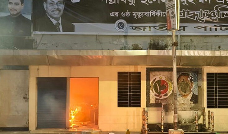 রাজধানীর বিজয়নগরে জাতীয় পার্টির কেন্দ্রীয় কার্যালয়ে হামলা-অগ্নিসংযোগ, দুই যুবক গুলিবিদ্ধ