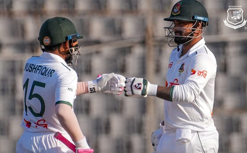বর্ণিল টেস্ট ক্যারিয়ারের শততম টেস্টে দ্যুতি ছড়ালেন মুশফিকুর রহিম। অসাধারণ ব্যাটিং দৃঢ়তায় হাঁকালেন দুর্দান্ত এক সেঞ্চুরি। দ্বিতীয় দিন সকালে ৫ ওভার খেলে ৪টি ভিন্ন ভিন্ন মাইলফলক ছুঁয়ে ফেলেছে দল।